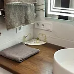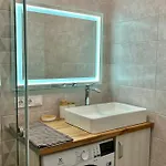 Die Apartments verfügt über ein Badezimmer mit einem Haartrockner, Handtüchern und Hausschuhen. Außerdem gibt es hier eine begehbare Dusche und eine getrennte Toilette.